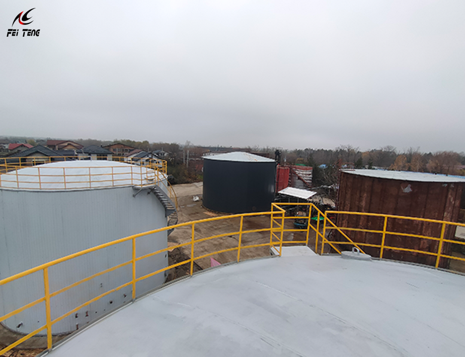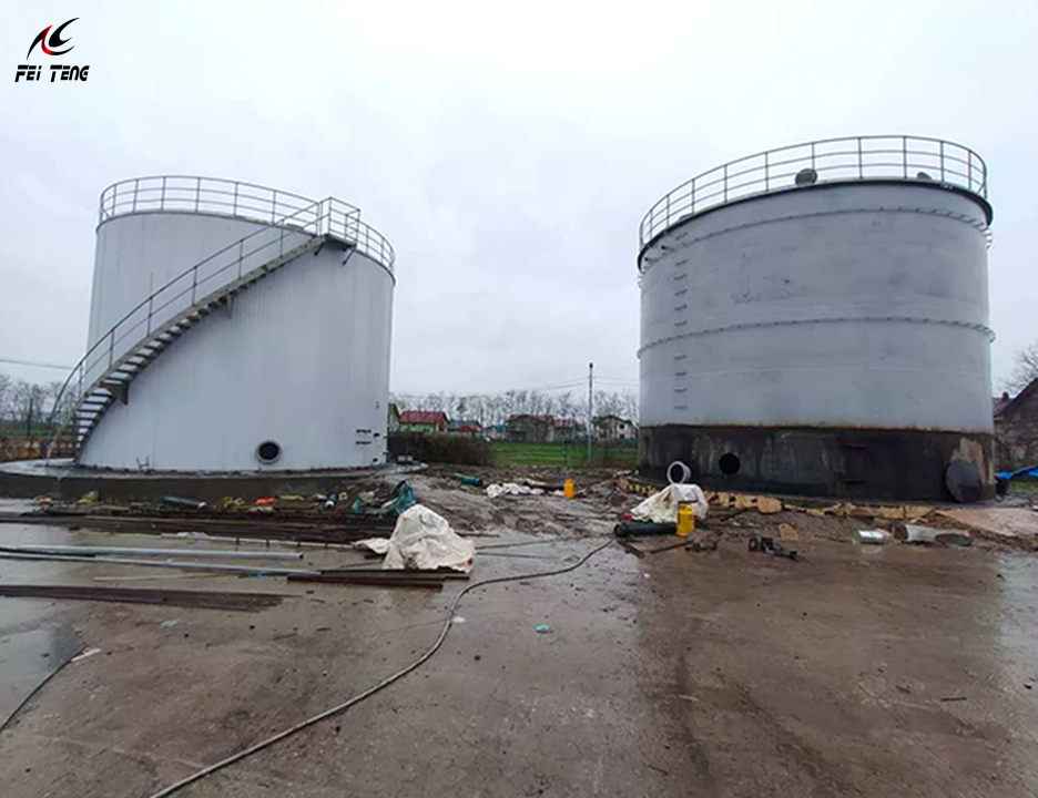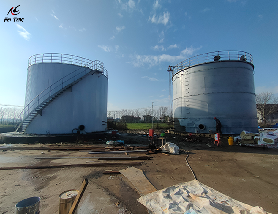 The tank adopts a vertical cylindrical structure with a flat bottom and conical roof.
